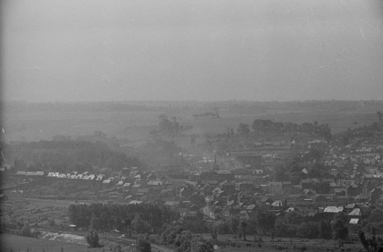 Le reporter suit la batterie et photographie la collégiale et le château d'Eu. L'artillerie allemande dotée de canon 10,5 cm Feldhaubitze FH 18 tire sur la ville et le secteur. Dans le secteur d'Huppy (14 kms au sud d'Abbeville) un blindé léger britannique Mark VI du 9e régiment des lanciers de la Reine (9th Queen's Royal Lancers) de la 1re division blindée britannique (1st Armoured Division) et des A 13 Mark II (Crusier Tank Mark IV).