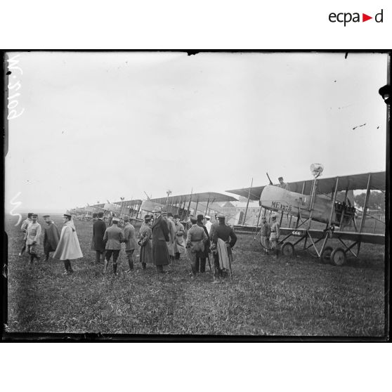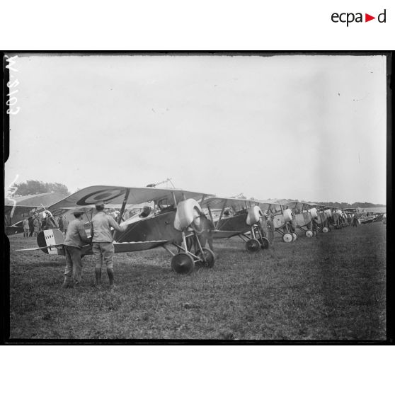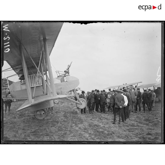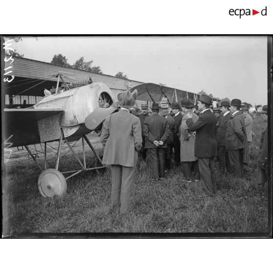 Champ d'aviation du Bourget, appareils de chasse Nieuport présentés aux parlementaires russes.
