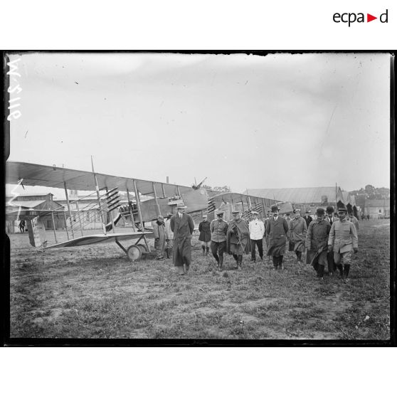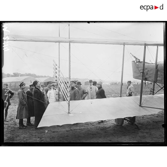 Champ d'aviation du Bourget, appareil Farman examiné par les parlementaires russes.