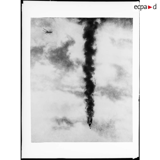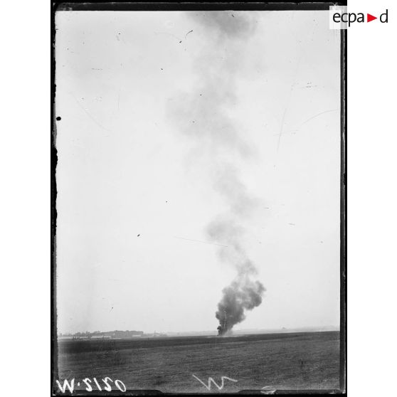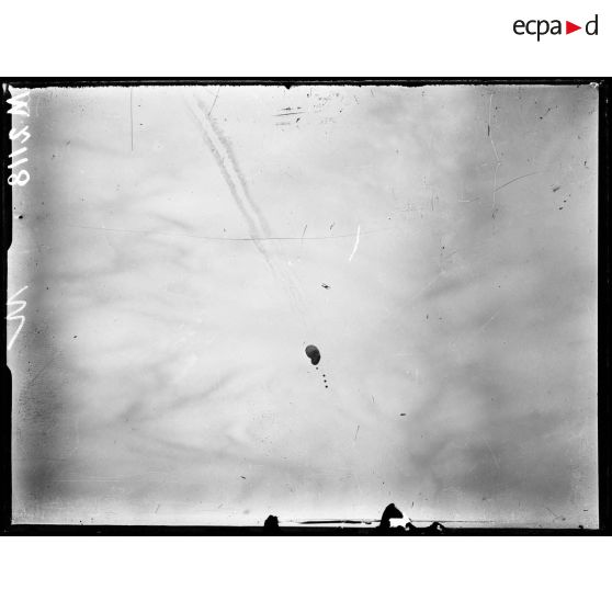 Camp d'aviation du Bourget, exercice d'attaque d'un ballon d'osbervation à l'aide de fusées lancées par un avion de combat.