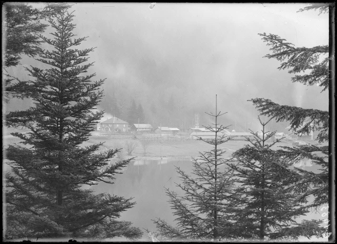 Lac de Retournemer. (Vosges). Usines militaires au bord du lac. [légende d'origine]