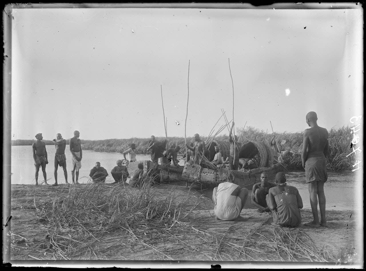 Après ce séjour sur le lac, la mission reprend le chemin du sud et remonte le cours du Chari. le convoi fait escale à Kobro, village déjà traversé à l'aller. Les tirailleurs accompagnant la mission se reposent sous leurs moustiquaires et l'opérateur photographie les cases. A Mouloua (Moulouang), en amont, on cultive le Nilé. A Partir de Kousseri, après le confluent du Chari et du Logone, la navigation se poursuit vers le sud en remontant le cours de ce dernier. Sur les bords du fleuve des bûcherons exploitent du bois de chauffage.