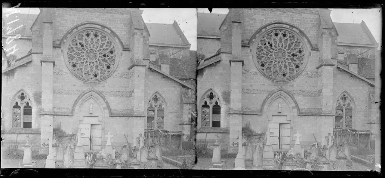 - À Vienne-le-Château (Marne, le 09/08/1917), la façade de l'église garde les traces des bombardements.