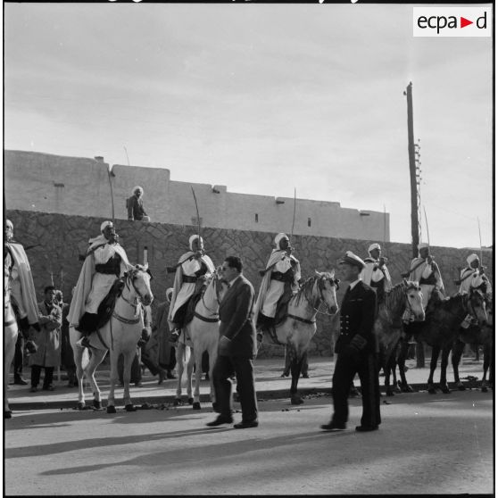 Laghouat. Voyage d'inspection. Jacques Soustelle passe les Maghzen en revue.