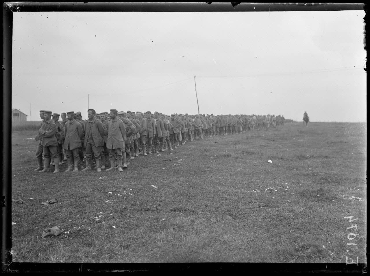 Près de Lamotte-en-Santerre. Arrivée au camp d'une colonne de prisonniers.