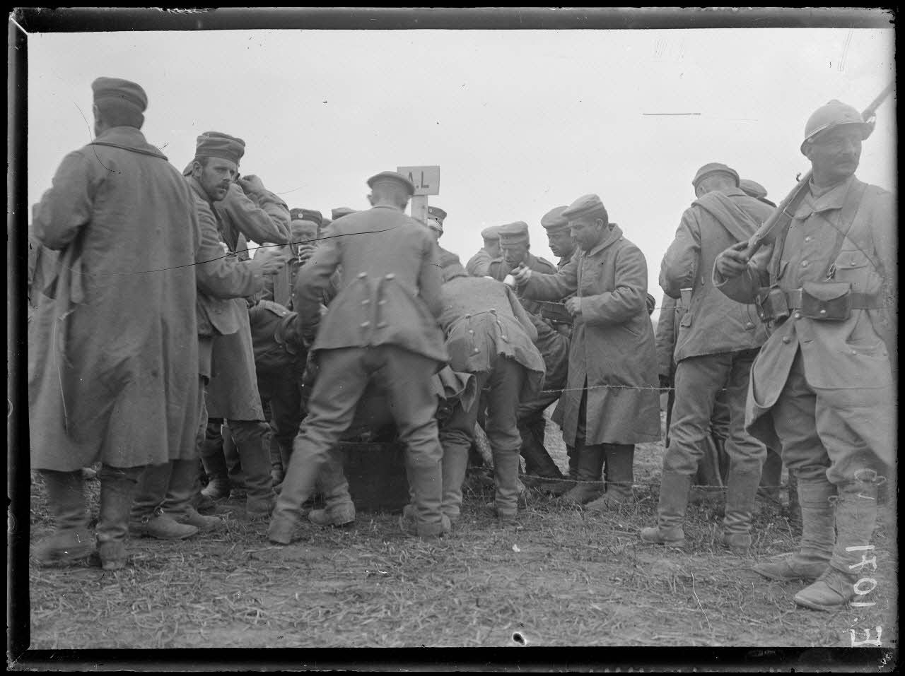Lamotte en Santerre (Somme). Prisonniers arrivant au camp.