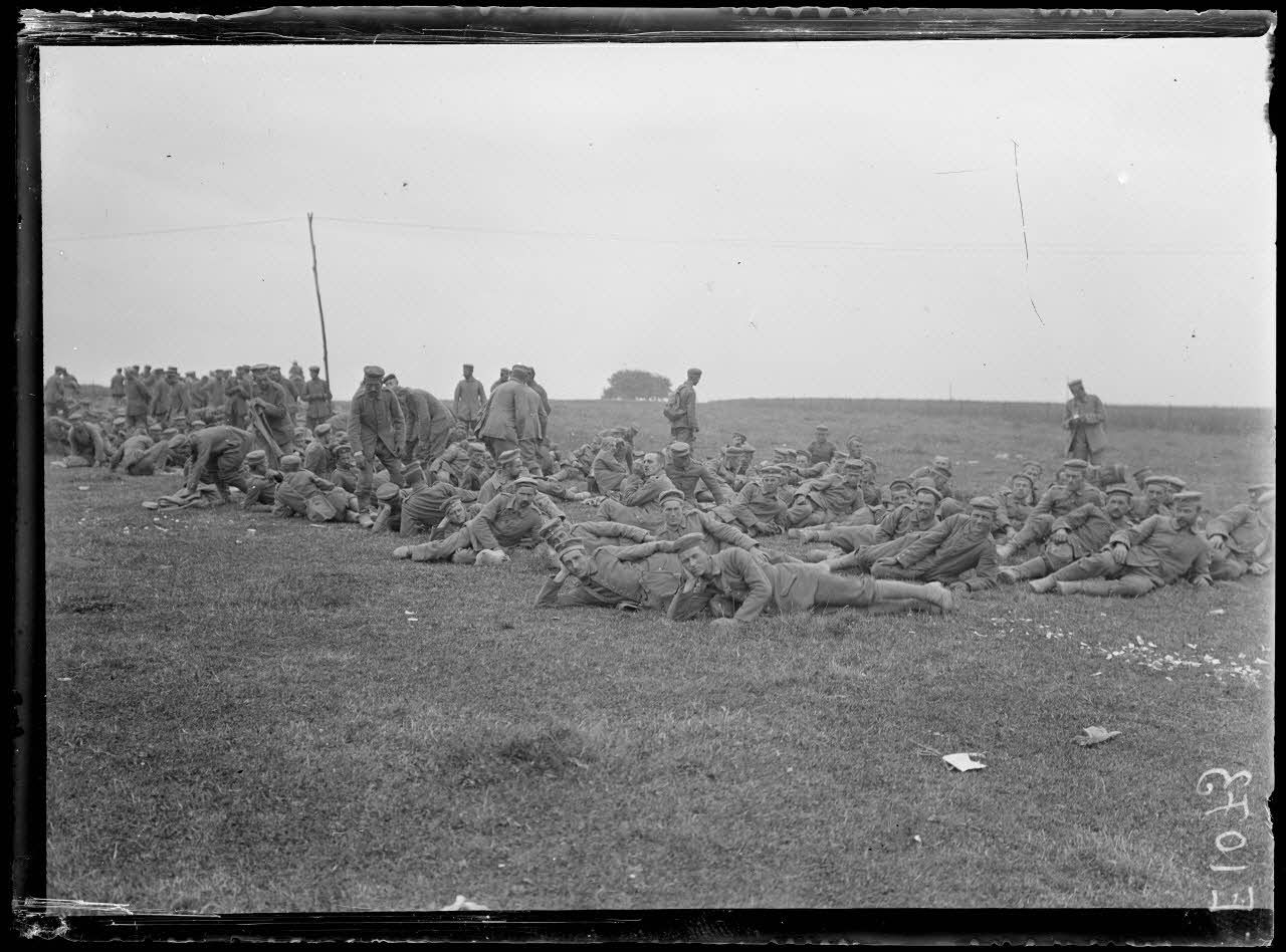 Près de Lamotte-en-Santerre. Arrivée au camp d'une colonne de prisonniers.