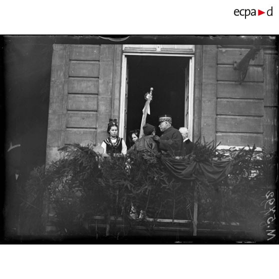 Wissembourg, le général Gérard est reçu par les autorités. Au balcon de l'hôtel de ville.
