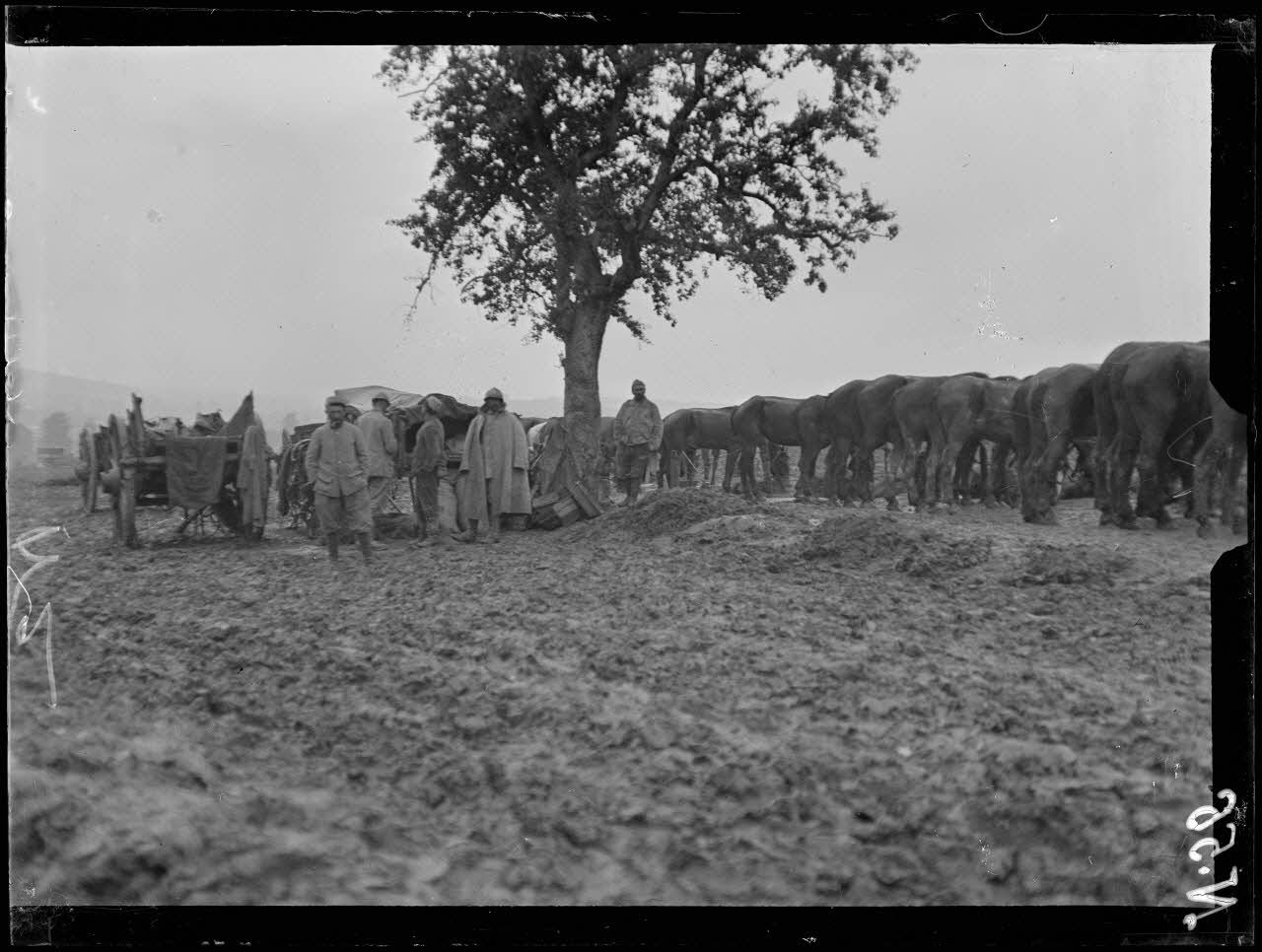 Autour de la ville, les cantonnements se suivent et des abris sont aménagés par les troupes du Génie (N 33 et N 34). Soldats du Génie, de l'Artillerie de campagne et de tranchée (155 mm court en route pour les tranchées, et mortier de 270 mm en batterie à Lempire-aux-Bois) vivent dans un paysage dévasté. À Dugny, une section sanitaire britannique du "British Ambulance Commitee" est à l'œuvre, l'aidant les blessés (N 53). À Bevaux, un campement d'artilleur s'est installé le long d'une voie ferrée de 0,60 cm (type Decauville) (N54 à N 55). À Landrecourt, des troupes sont stationnées dans un cantonnement. À Nixeville, les troupes partent pour les tranchées sous la pluie (N 63).