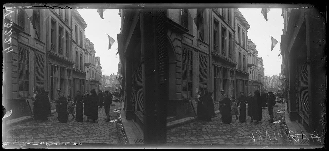 Saint-Quentin, rue partant de la place de Longueville que les Allemands ont fait sauter.