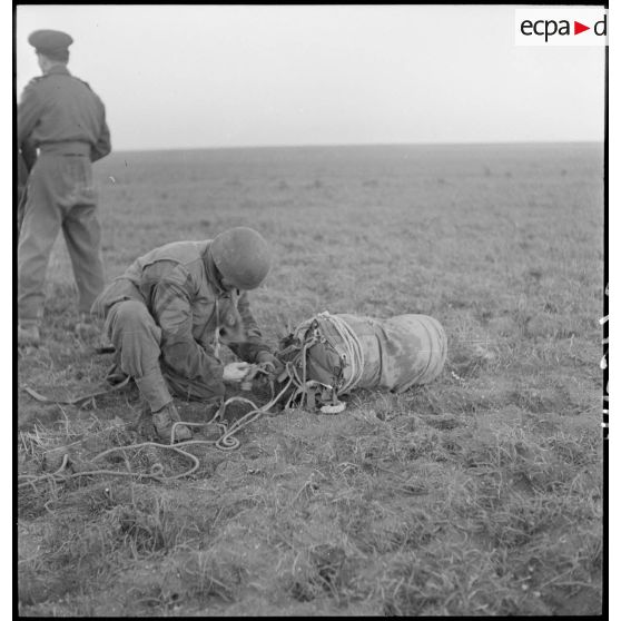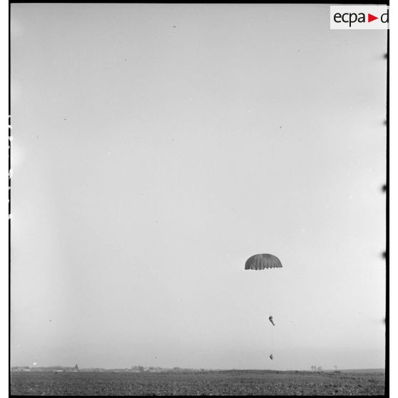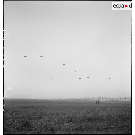 Largage de parachutistes français brevetés en Grande-Bretagne, dans la région d'Epernay.