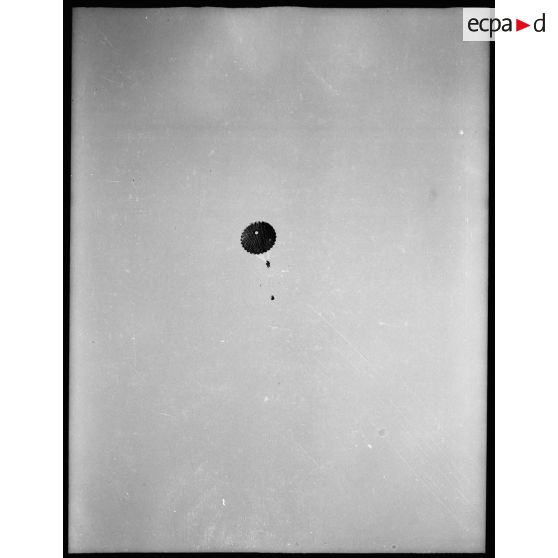 Descente d'un groupe de parachutistes français sur le sol d'Epernay.