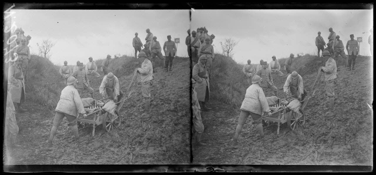 Lassigny (Oise). Essai de nouveaux engins pour le ravitaillement en munitions (nov. 1917).