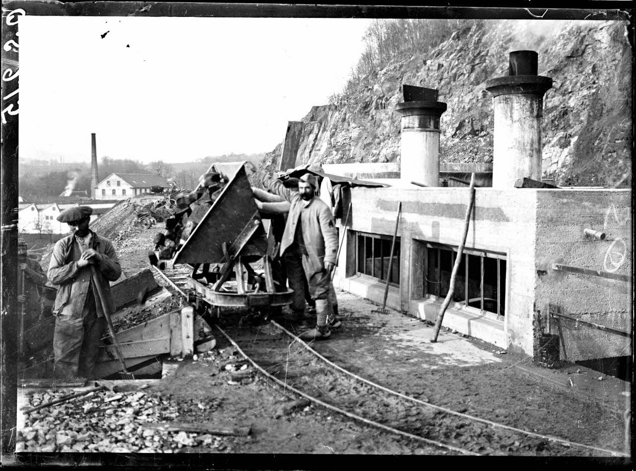 Lauw (Alsace). Carrière de pierre. Chargement du concasseur. [légende d'origine]