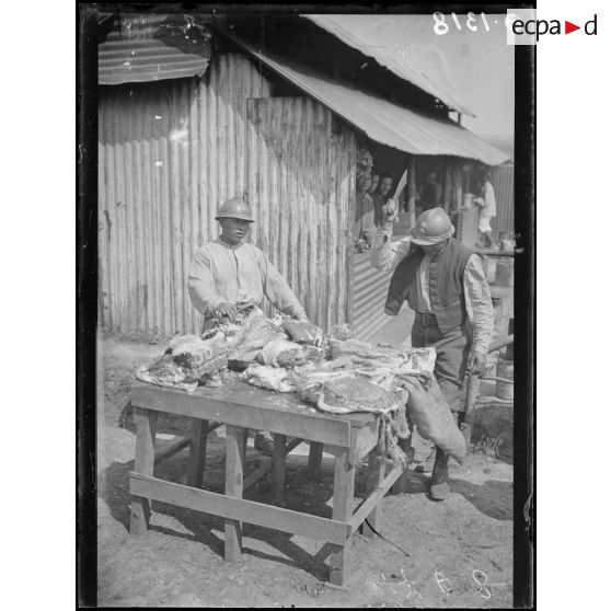 Le Breuil. Marne. La viande, au camp annamite.