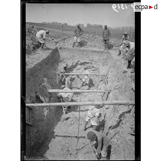 Le Breuil. Marne. Etablissement de tranchées.