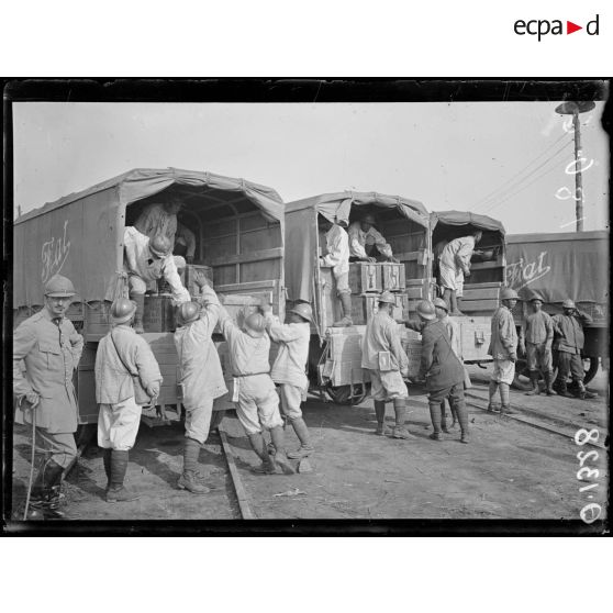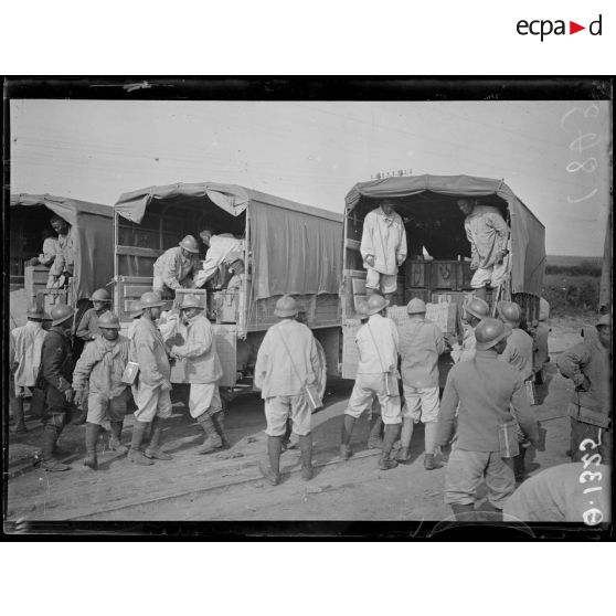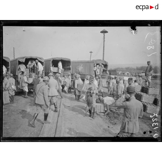 Le Breuil. Marne. Déchargement de munitions.