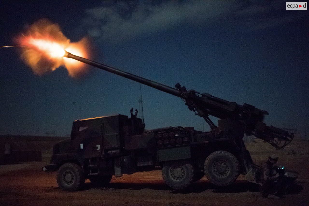 Déployés à Erbil, les canons du 93e RAM participent à acculer la force terroriste qui se replie dans une ultime poche près de la frontière, tandis que la batterie du 3e RAMa assure l’appui feu. Le canon est sollicité jour et nuit pour appuyer les manœuvres alliées par des tirs éclairants, de destruction ou de barrage. Une fois l’ordre de tir donné, après vérification des conditions météorologiques au moyen d’un ballon captif, le canon fait feu, puis les artilleurs rechargent jusqu’à la fin de la séquence.