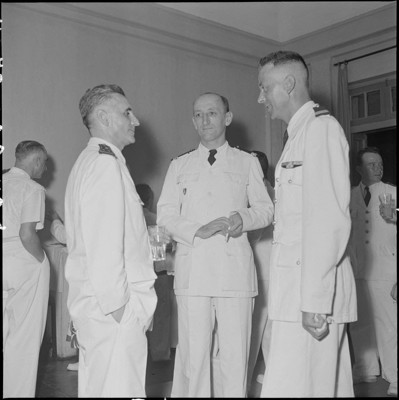 Le capitaine Barnes et le général Pélissié au cocktail d’adieu de ce dernier.