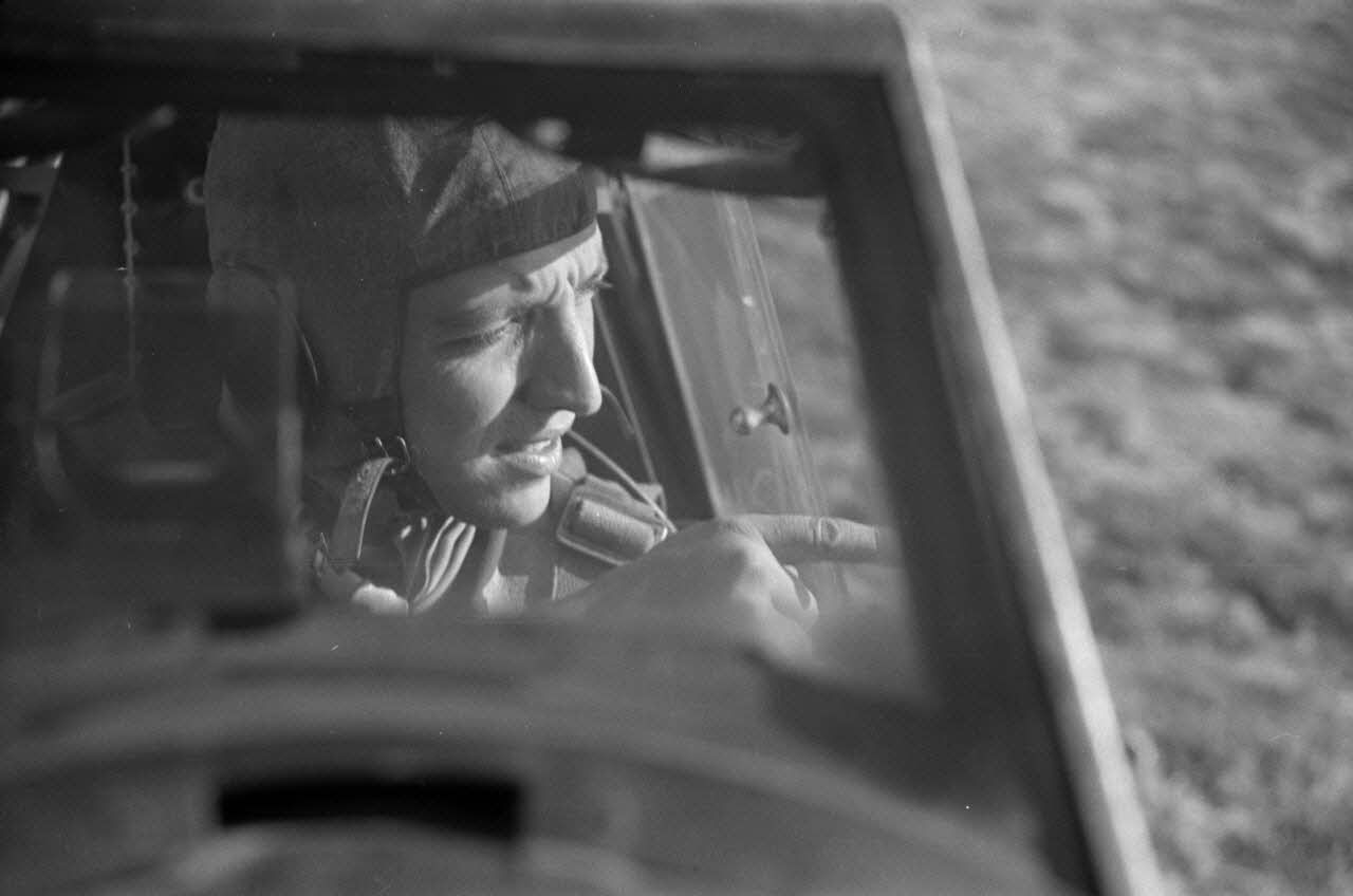Portrait du pilote Dicesare Ioan aux commandes d'un chasseur allemand Messerschmitt Bf-109.