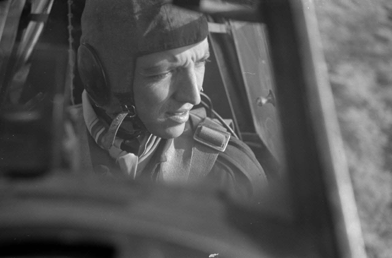 Portrait du pilote Dicesare Ioan aux commandes d'un chasseur allemand Messerschmitt Bf-109.