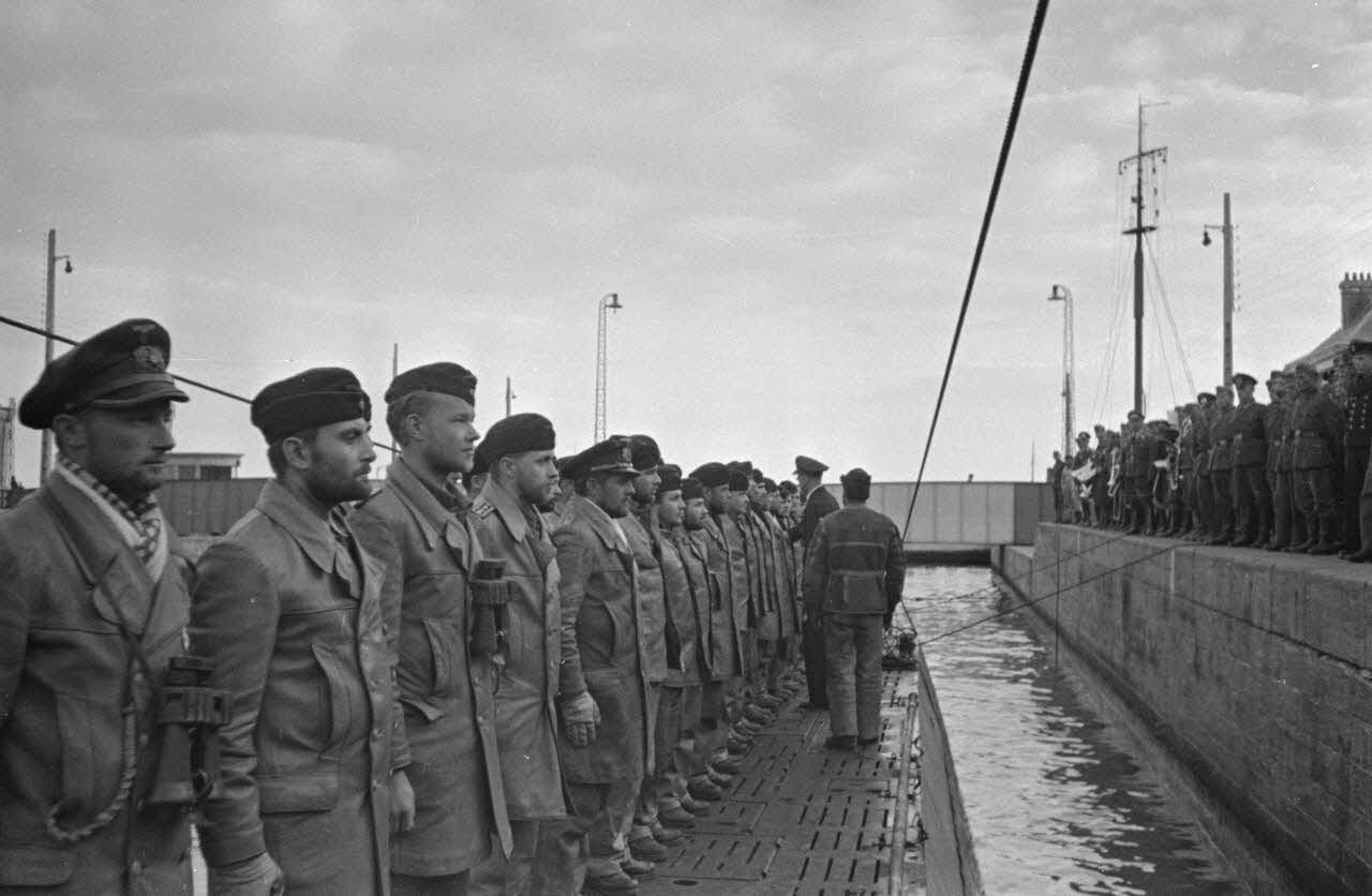 A Saint-Nazaire, l'équipage du sous-marin U-75 débarque.
