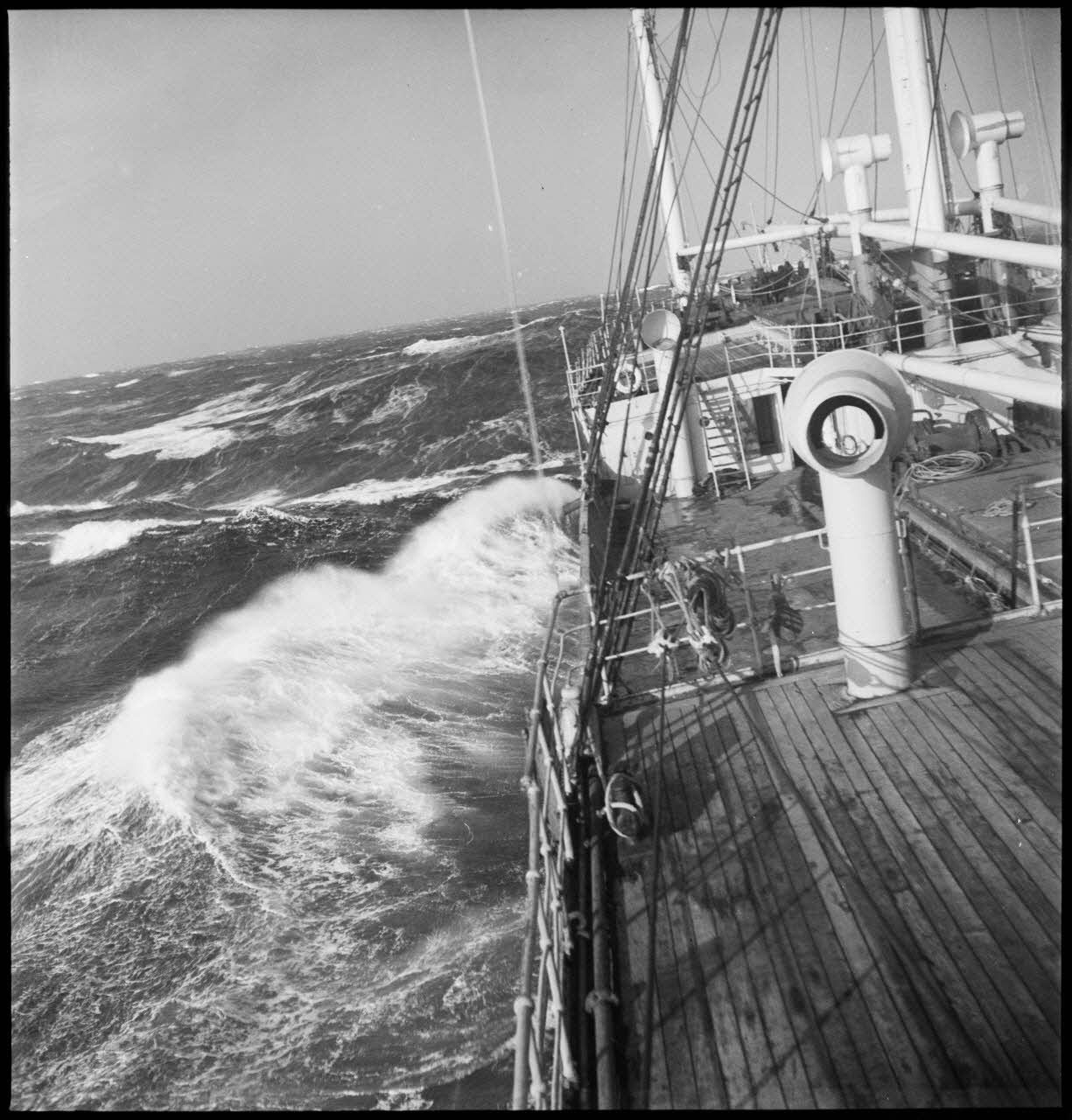 Lieutenant de vaisseau de quart à la passerelle du cargo réquisitionné Yang Tsé. Au premier plan, un transmetteur d'ordres mécanique ou Chadburn.