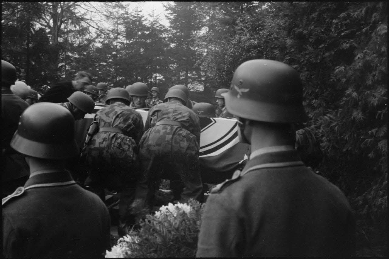 A Bonn, dans le cimetière situé au nord de la ville, se déroulent les obsèques du lieutenant-colonel (Oberstleutnant) Walter Koch, officier parachutiste.