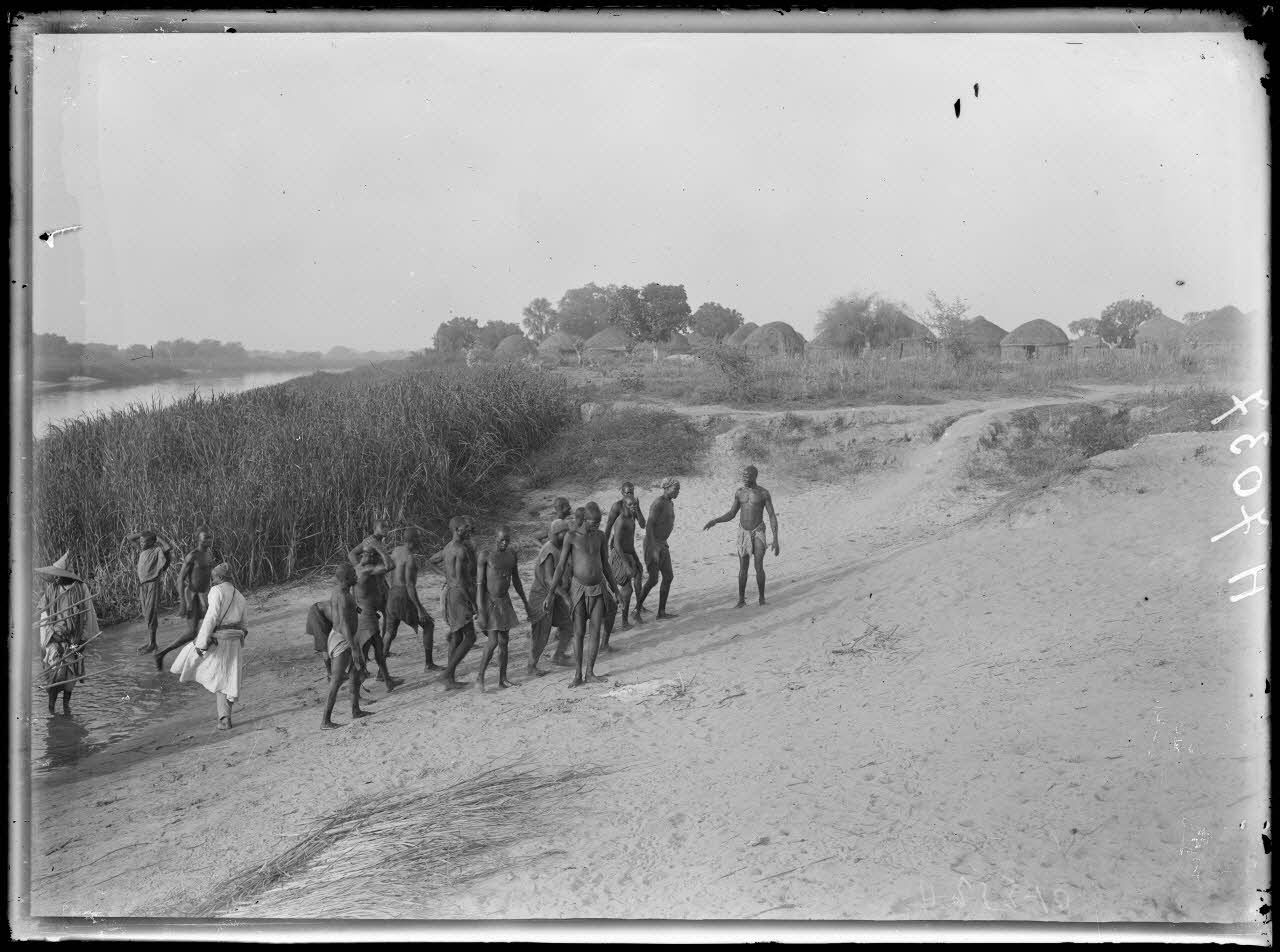 Le Chari. Débarquement à Djimtillo, dernier village français. [légende d'origine]