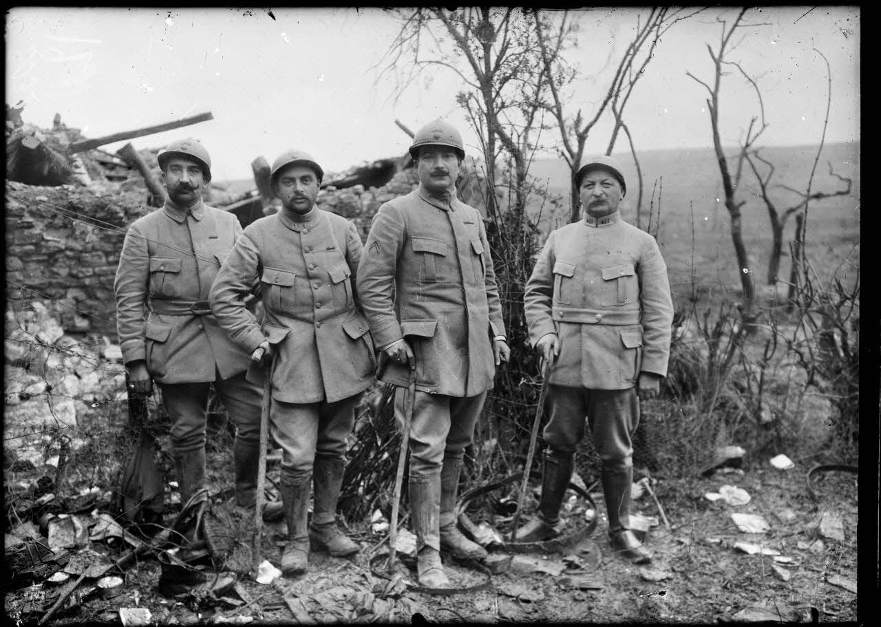 Le colonel Thinus et ses officiers qui se sont emparés de Vacherauville. [légende d'origine]