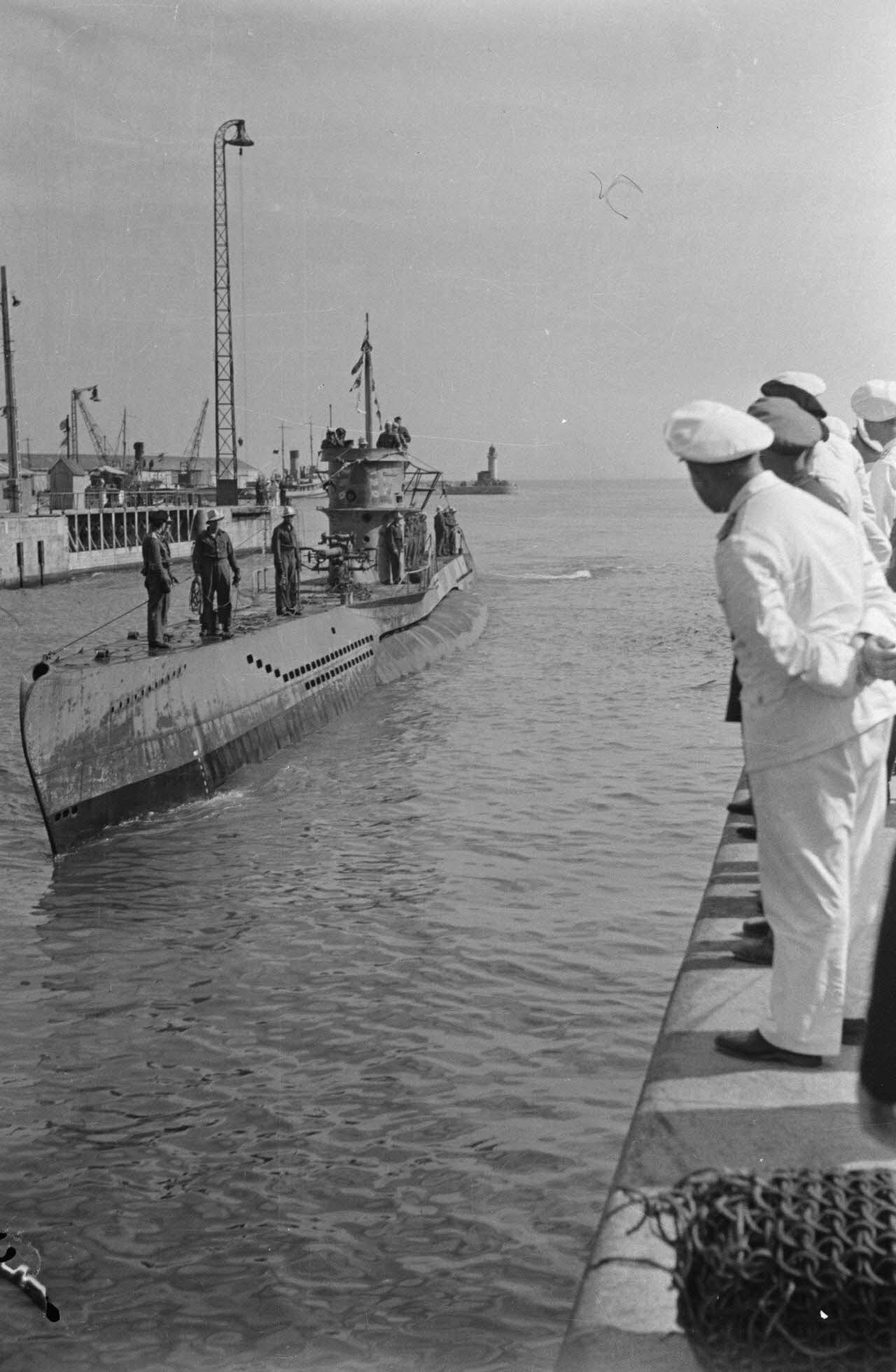 Retour du sous-marin U-boot U-69, commandé par le capitaine (Kapitänleutnant) Jost Metzler.