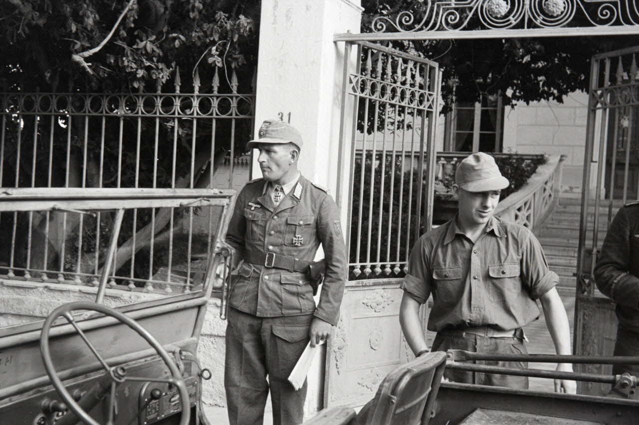 Le Major (commandant) Sylvester von Saldern Brallentin quitte un bâtiment occupé par le I./ Infanterie Regiment 65 ou la 22 Infanterie-Division ( 22-ID). Von Saldern Brallentin monte à bord d'une jeep britannique capturée et parcoure l'île de Samos et notamment le secteur du port de Vathy. A l'arrière de cette jeep d'origine britannique, le nom du Major von Saldern Brallentin est indiqué. Le Major pose pour le reporter certainement suite à sa remise de décoration (Ritterkreuz). On le retrouve notamment devant un semi-chenillé Sd.kfz. 10/5 posté pour la défense du port de Vathy.