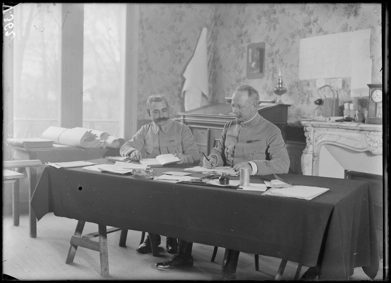 Près de Reims, le général Castaing et le commandant Ruillier, chef de son état-major discutent.