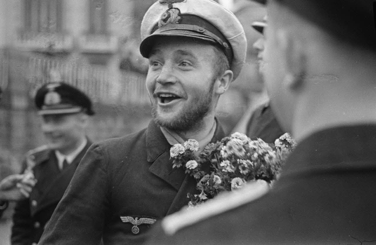 Retour de mission à Saint-Nazaire du Kapitänleutnant Hans-Peter Hinsch commandant du sous-marin U-569.