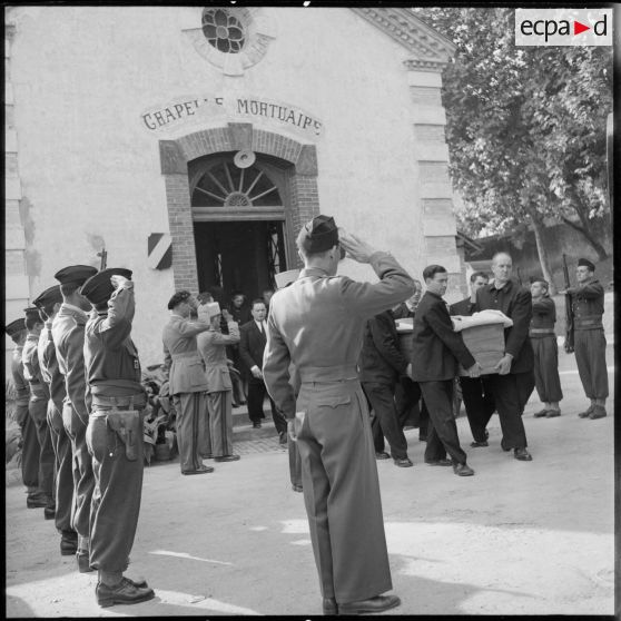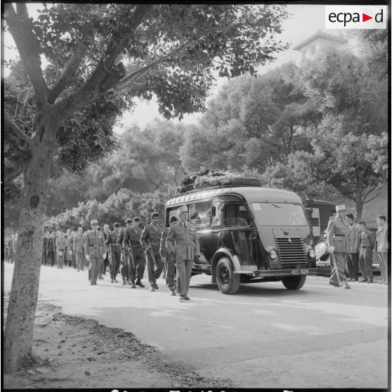 Le cortège funéraire du lieutenant Gérard Jacquotte, responsable de la SAS des Ouadhias.