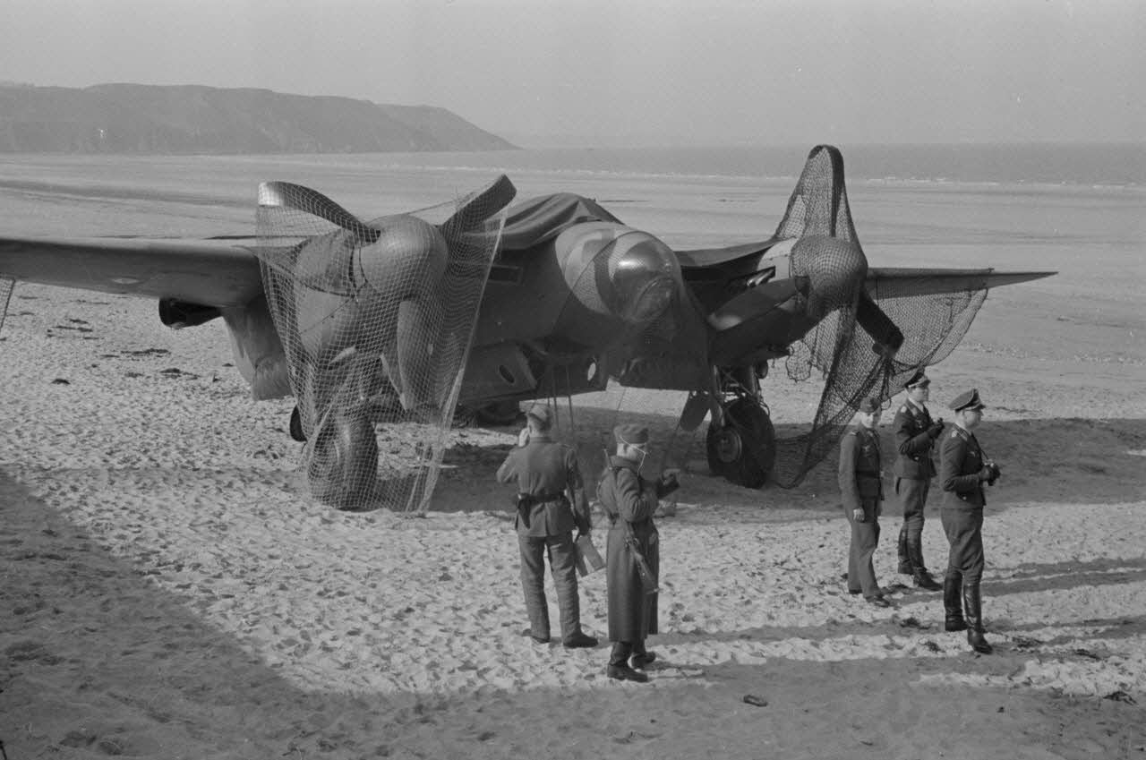 Le De Havilland Mosquito DZ466 capturé sur la plage des Rosaires (Côtes-d'Armor).