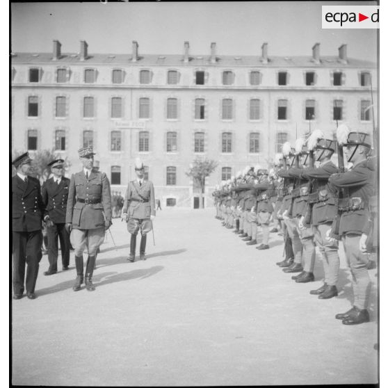 Les écoles militaires : visite de l'école spéciale militaire de Saint-Cyr et de l'école militaire d'infanterie de Saint-Maixent, repliées à Aix-en-Provence, par les élèves officiers de l'école navale.