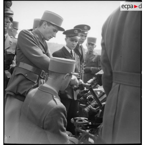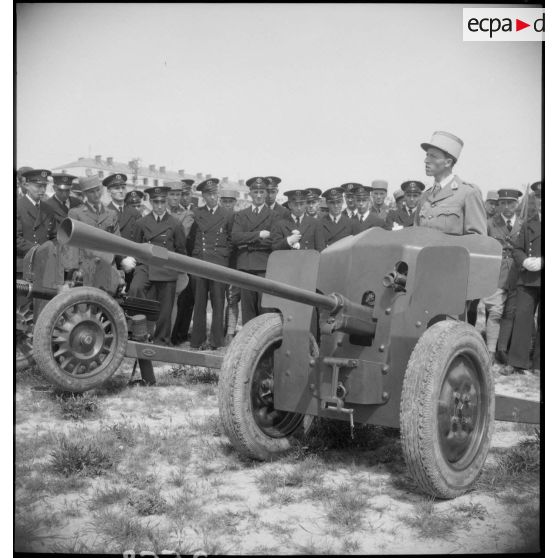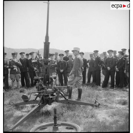 Présentation d'une mitrailleuse de 20 mm modèle 1939 aux élèves officiers de l'Ecole navale.
