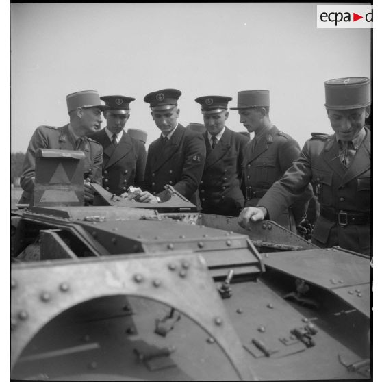 Présentation d'une chenillette d'infanterie aux élèves officiers.