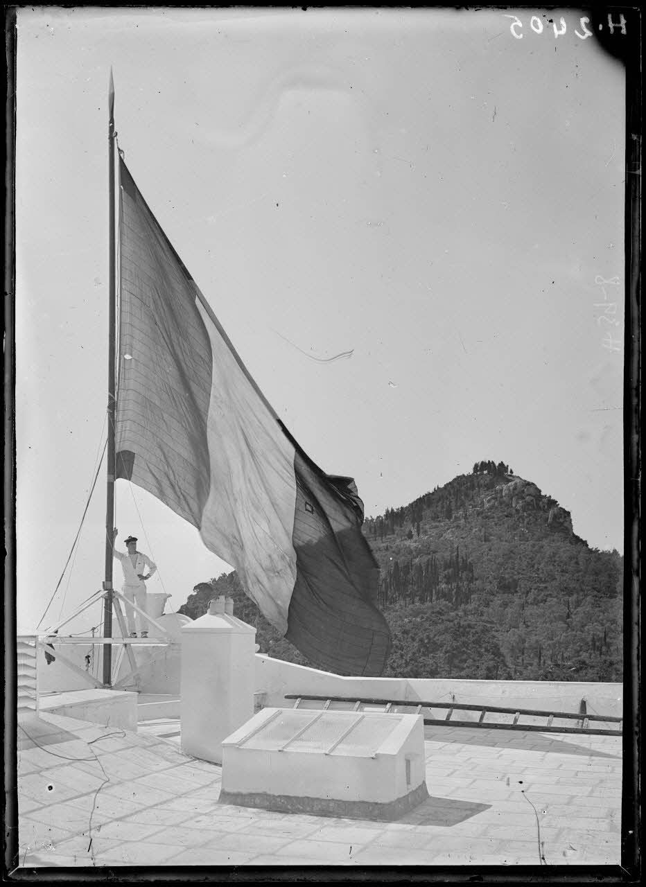 Le drapeau français hissé le 12 juin 1916 au sommet de l'Achilleion. [légende d'origine]
