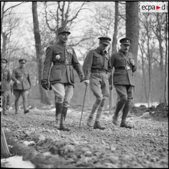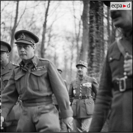 Lors de la visite d'une unité de la BEF le duc de Windsor est accompagné par des officiers français et anglais.