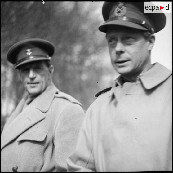 Le duc de Windsor est photographié en plan américain lors de la visite d'une unité de la BEF.