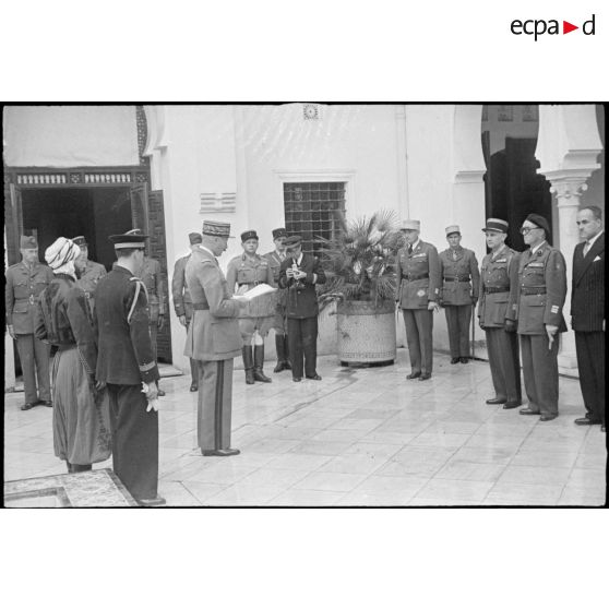 Le général Giraud lit les citations des récipiendaires au palais d'été d'Alger.
