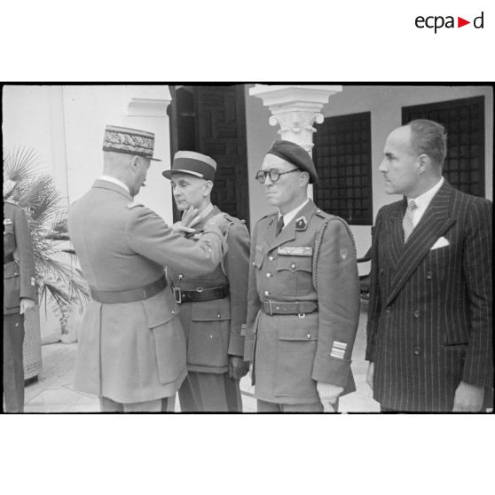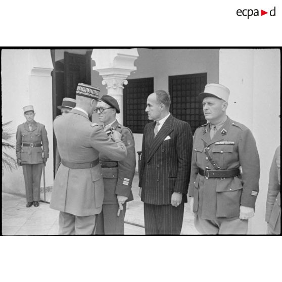 Remise de décorations aux soldats qui ont préparé le débarquement allié en Afrique du Nord par le général Giraud.