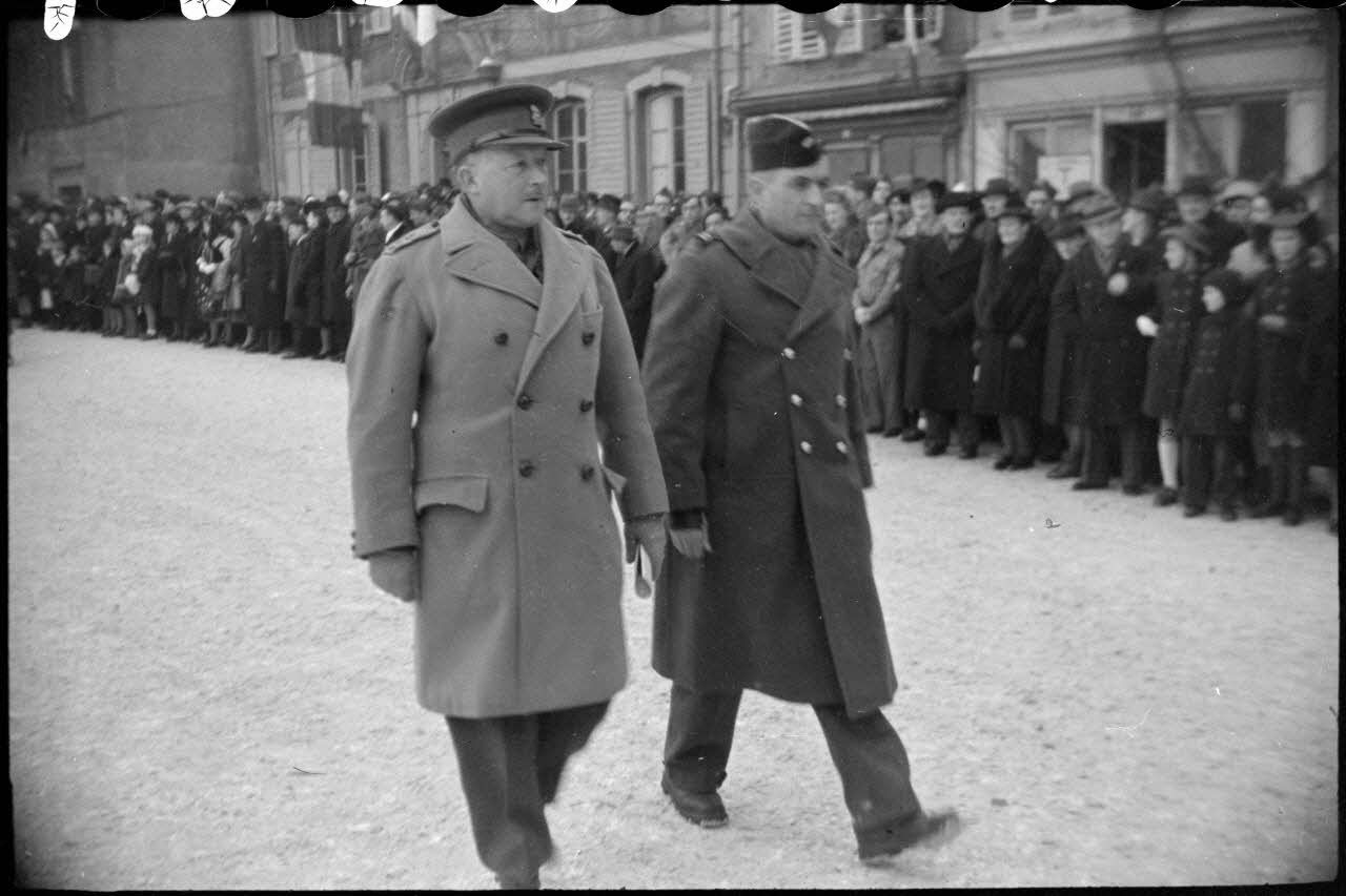 Le 14 janvier 1945, une délégation d'attachés militaires étrangers, en visite sur le front d'Alsace, participe à une cérémonie militaire à Masevaux en présence du général de division Marcel Carpentier, commandant la 2e DIM.