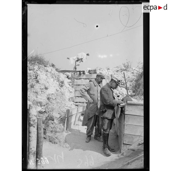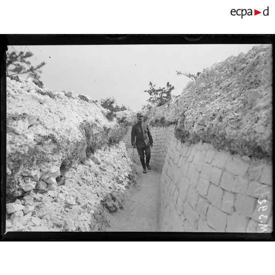 Le capitaine Bienfait du 45e régiment d'infanterie dans les tranchées de craie du grand cavaliers de Courcy.