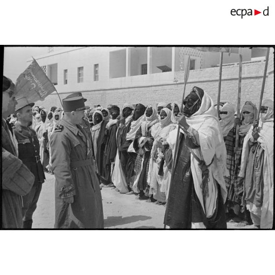 Présentation, à Ghât, des notables et caïds au général de corps d'armée Henry Martin, commandant le 19e corps d'armée (CA).