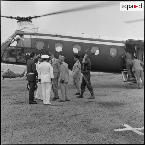 Arrivée du général de Gaulle à Berthelot, accueilli par le colonel Bigeard, commandant le secteur de Saïda