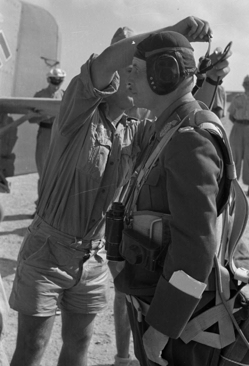 Pendant la campagne d'Afrique, en Egypte, le maréchal Erwin Rommel s'équipe d'un parachute- Document non daté - images Presse-Illustrationen Heinrich Hoffmann / Kriegsberichter Krempl, publiée dans le "Berliner Illustrirte Zeitung" 45/1942 Originalaufnahme im Archiv von Ullstein bild.