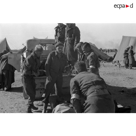 Dans le secteur de Sidi Azeiz (à l'ouest de Bardia), la prise en charge de blessés britanniques à proximité d'un hôpital de campagne.